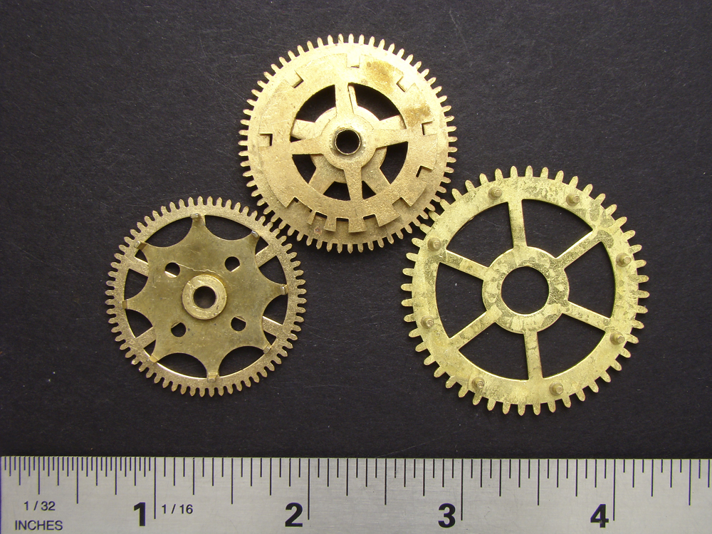 I just finished dismantling a bunch of antique clocks and cleaning hundreds of brass gears. I’ll be listing many new gear lots on Etsy.com. I’ve been able to put together many brass gear lots varying in size and count. Some gear lots will have four brass gears and some will have two or three large brass gears. You can find them at Etsy.com store. Here: Steampunk Art Supplies